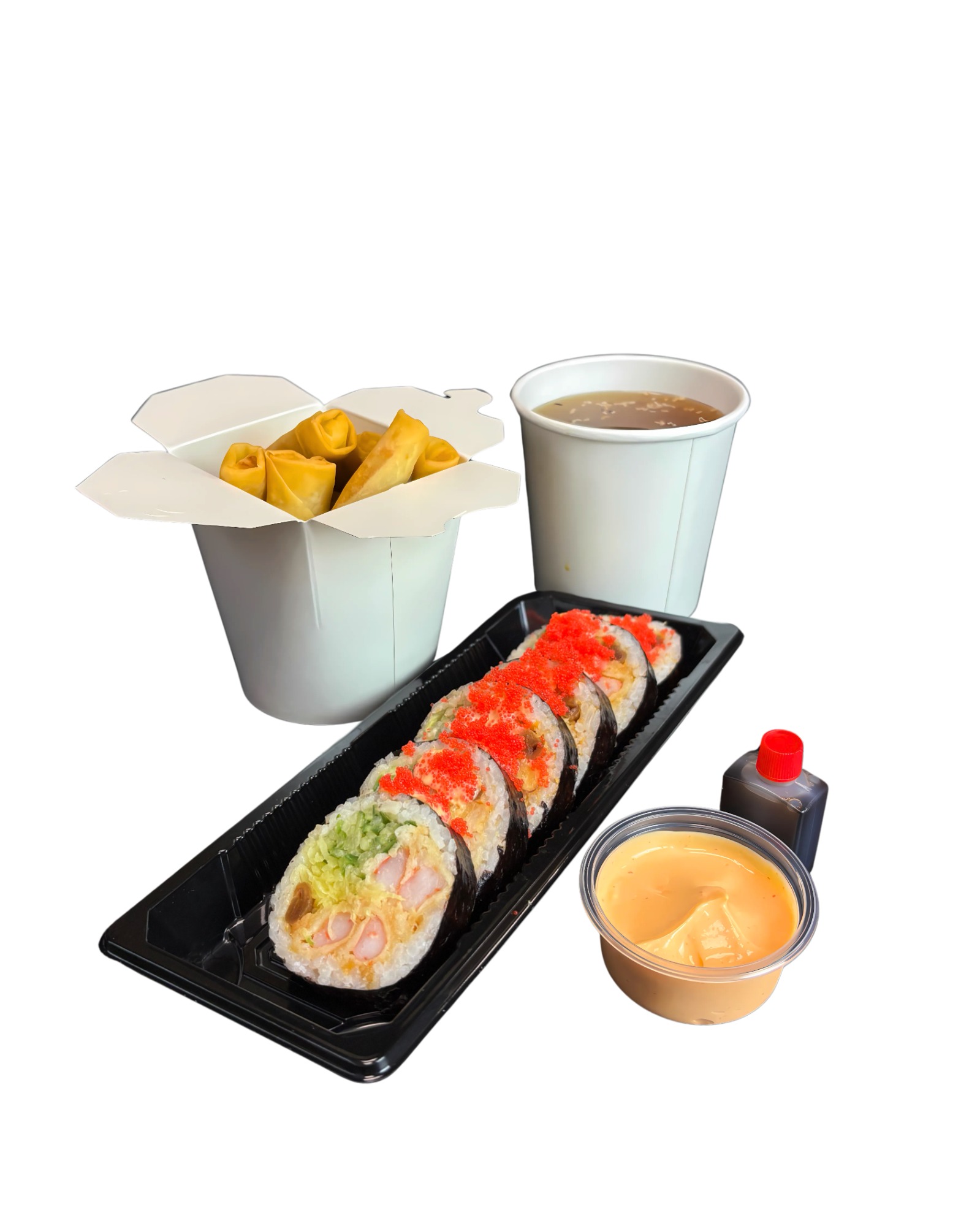 FUTOMAK : 6 elementów - grilowany łosoś z dodatkami - cała rolka w tempurze