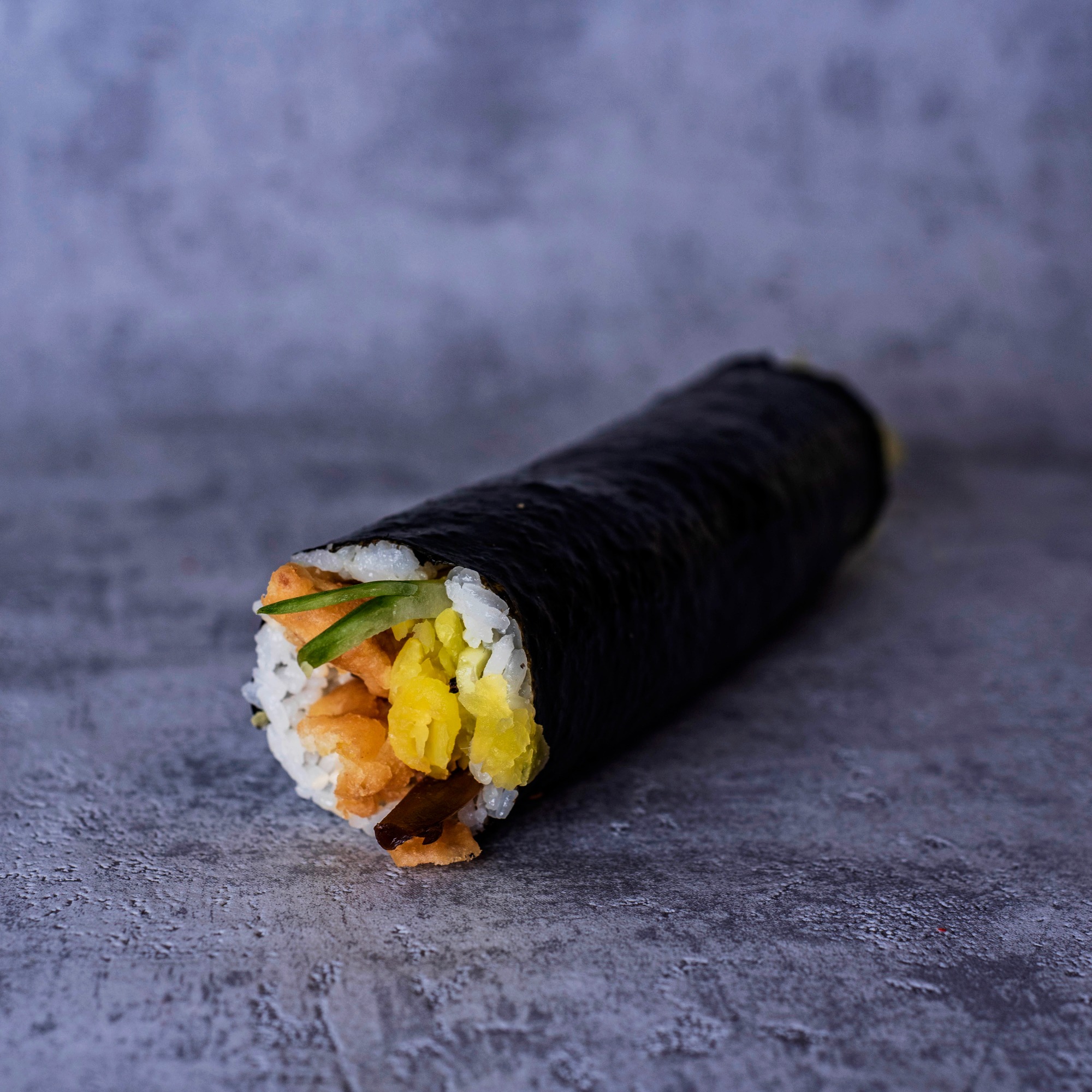 Futomak 6 elementów : Kurczak w Tempurze, ogórek, oshinko, kanpyo, sos spicy mayo,